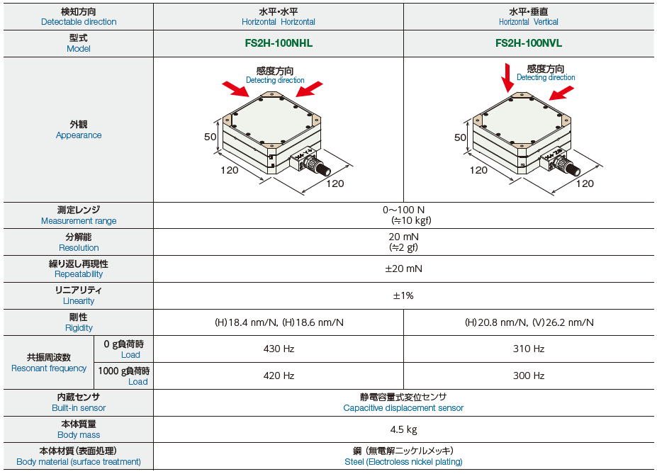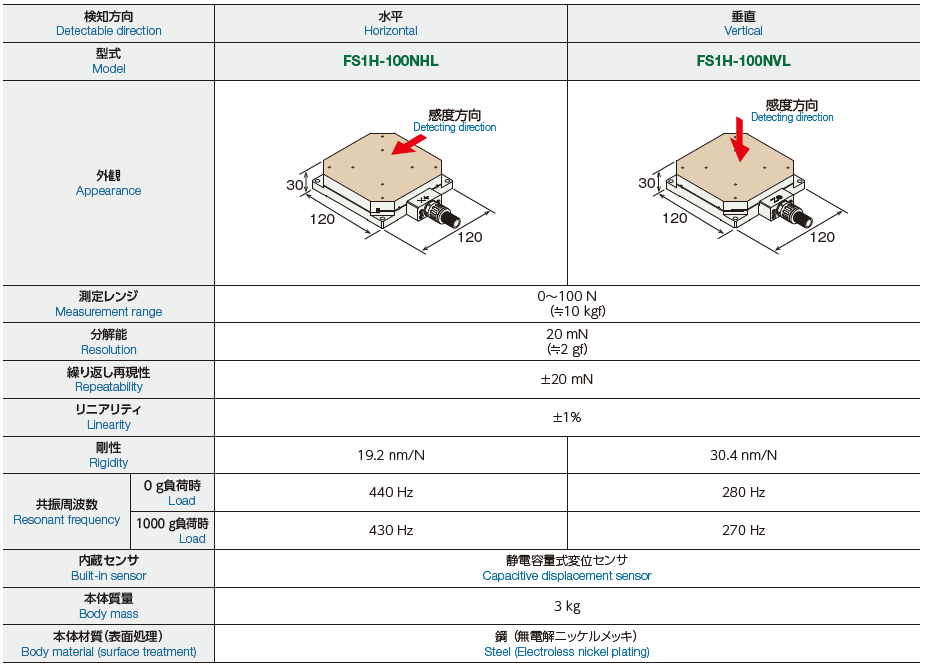 Capable of detecting and measuring a load of 100 N (10 kgf) or more with high resolution. Optimal for force measurement in precision machining or precision pressing. Supports customization such as a change of the shape or the sensitivity.
